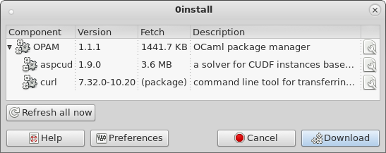 Path: (package:rpm:curl:7.32.0-10.20:x86_64)OPAM depends on two other programs: aspcud provides a better solver than the internal one and curl is used to download OPAM packages (it also generally needs gcc, m4 and patch, but I started with just the ones people are likely to be missing).